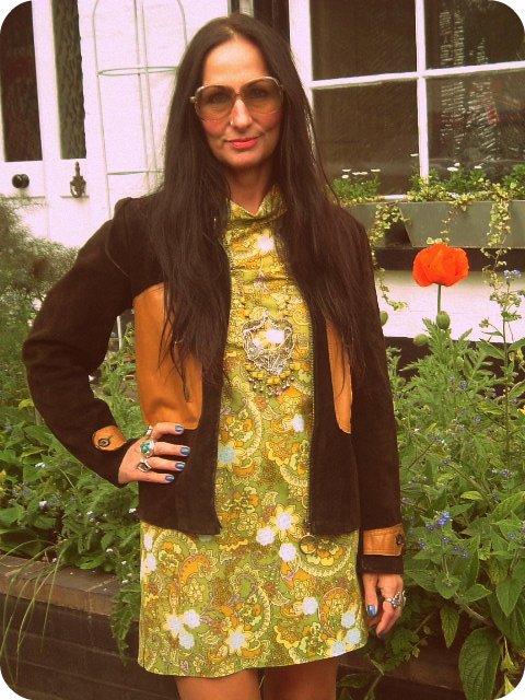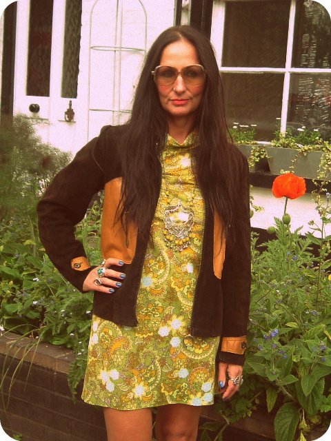 | 1960's paisley mini dress (courtesy of gorgeous Desiree), vintage pendant (courtesy of the equally fab Ivy Black) |