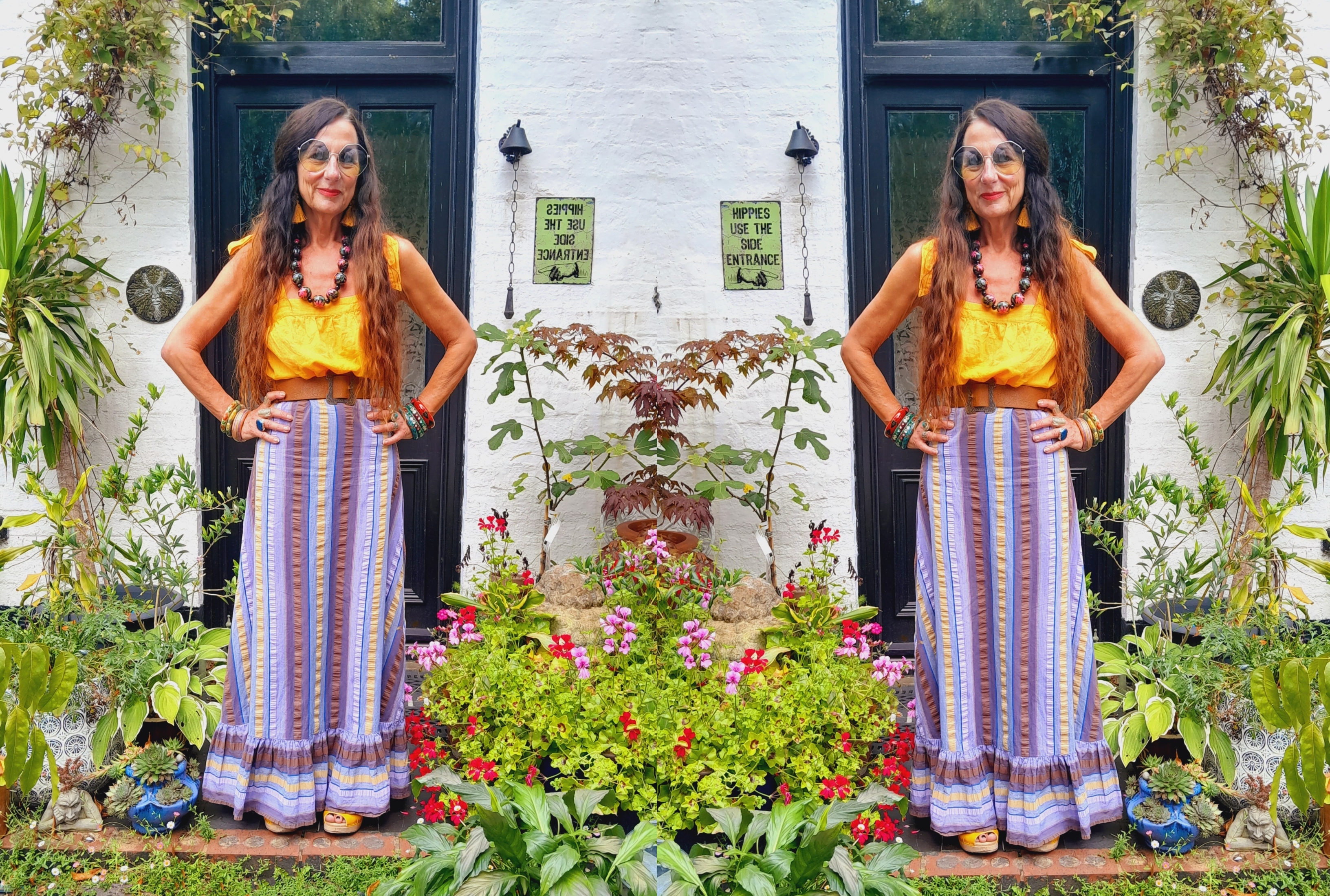 Jon's batik shirt was a charity shop buy back in 2019, the shorts had faded over the years so he redyed them at the weekend. William's shiny coat is all his own.