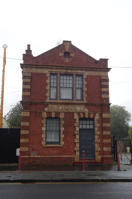 The quirky looking building below was the former Office of Wolverhampton District Electric Tramways Ltd.. built in 1902. The depot was converted for the use of trolley buses between 1928-30 and closed in 1965. To the left you can see the Kandha, the symbol of the Sikh faith, as there's a gurdwara next door.